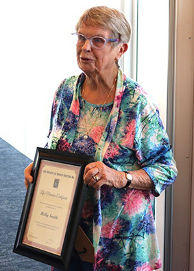 Our first member to reach 40 years of continuous membership was Molly Smith from Albany. Molly was presented with a special gift and certificate, and awarded Life Membership at the 2021 Bronze Quill event.